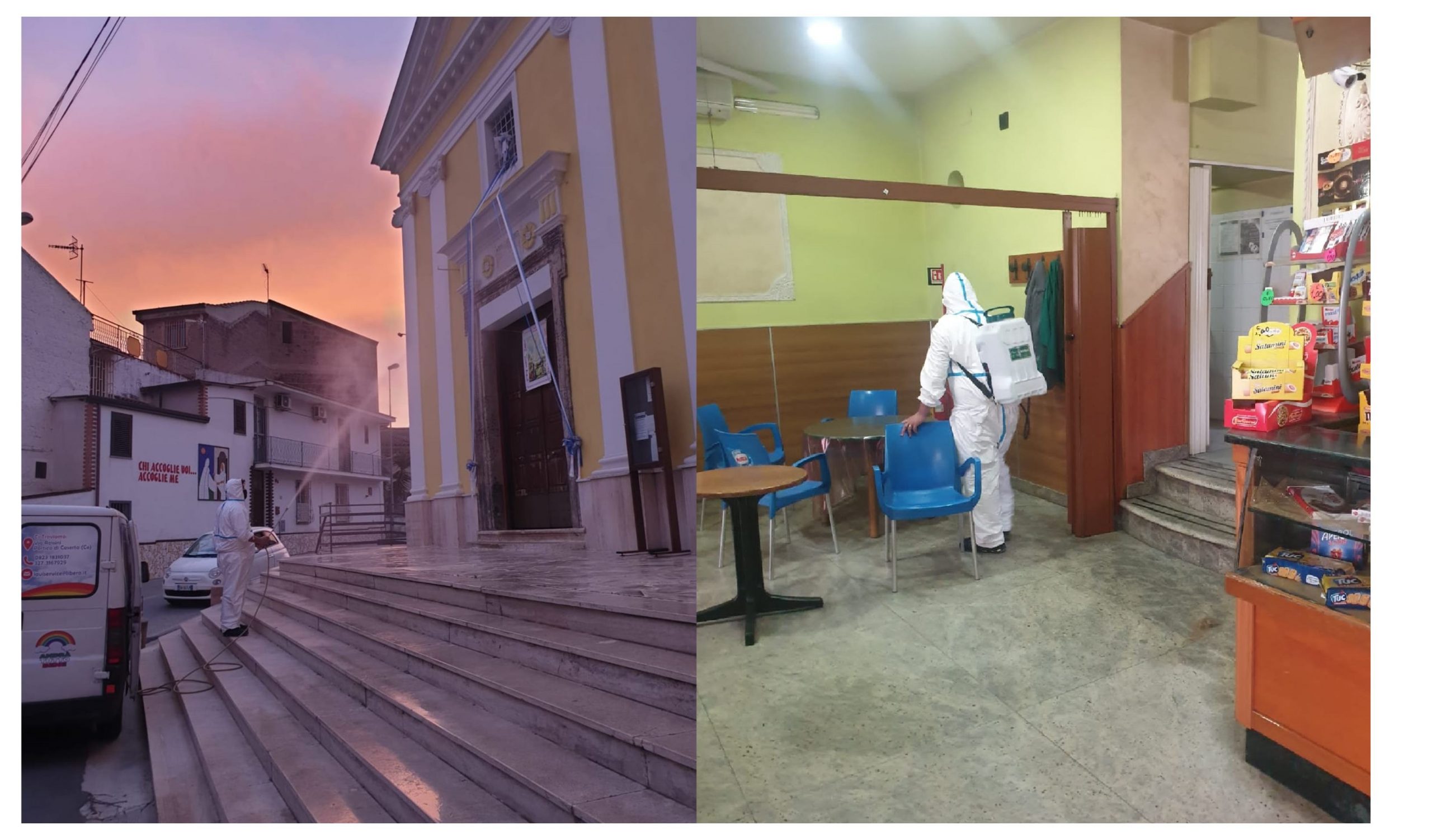 Macerata Campania. Sanificazione di 30 esercizi commerciali e di 3 chiese