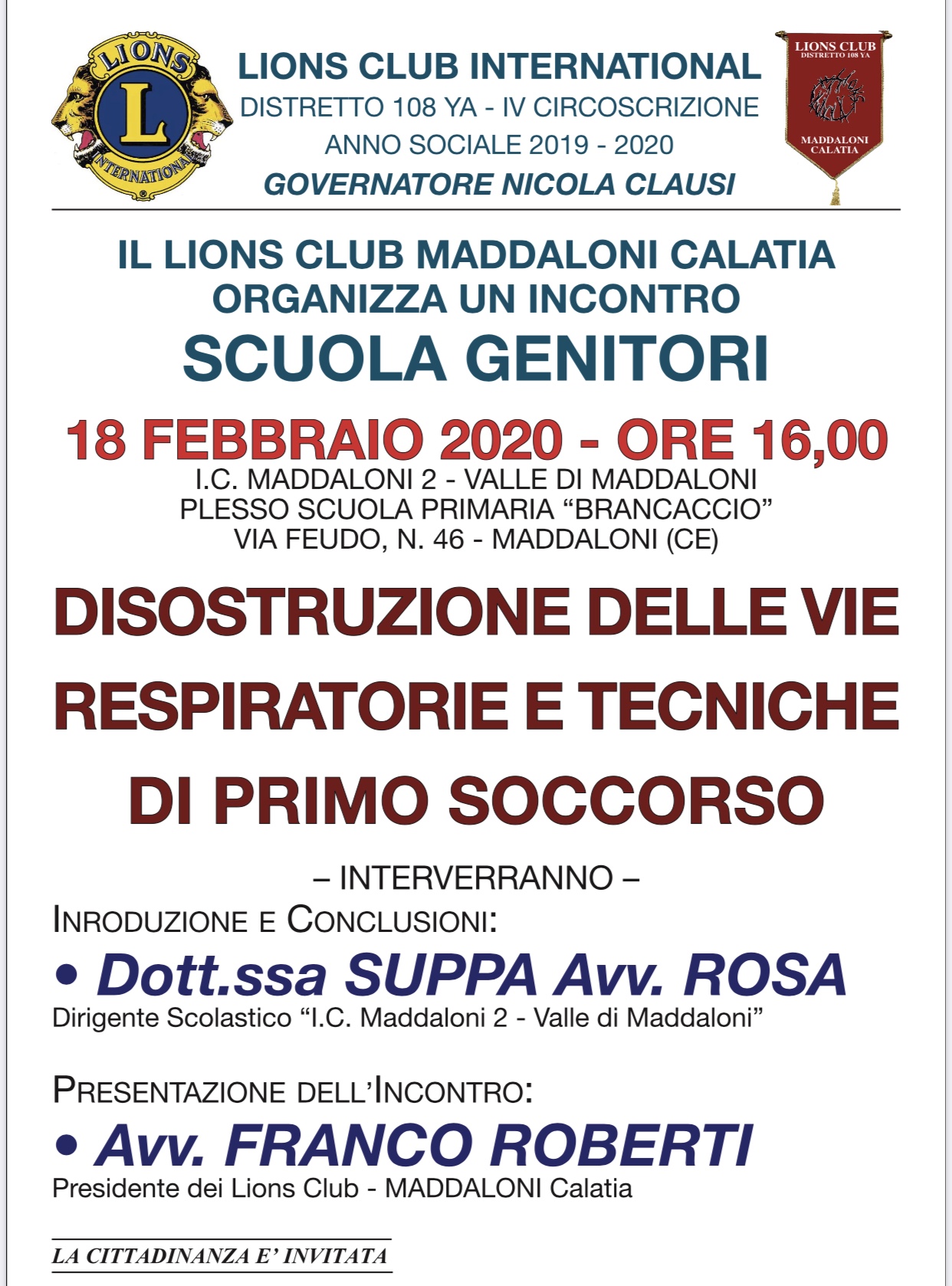 L’iniziativa, non prima di questo genere, rappresenta oramai un impegno fisso dei Lions Club Maddaloni Calatia che si perpetua da anni! Insegnare ai genitori gli elementi basici di come affrontare i momenti drammatici di un soffocamento infantile rappresenta un momento importante nell’attività lionistica dei Lions Club Maddaloni Calatia!