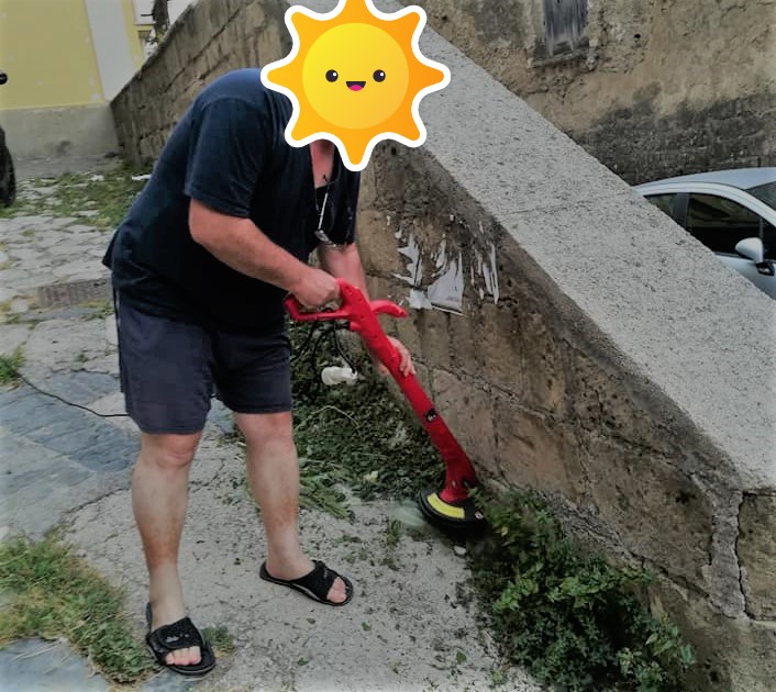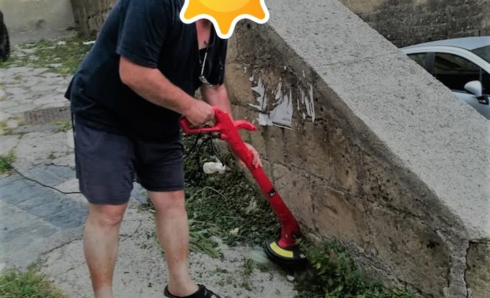 Abbiamo ripreso nel titolo l’ironico post apparso ieri su Facebook che immortala un cittadino residente nel centro storico intento a tagliare l’erba in strada.