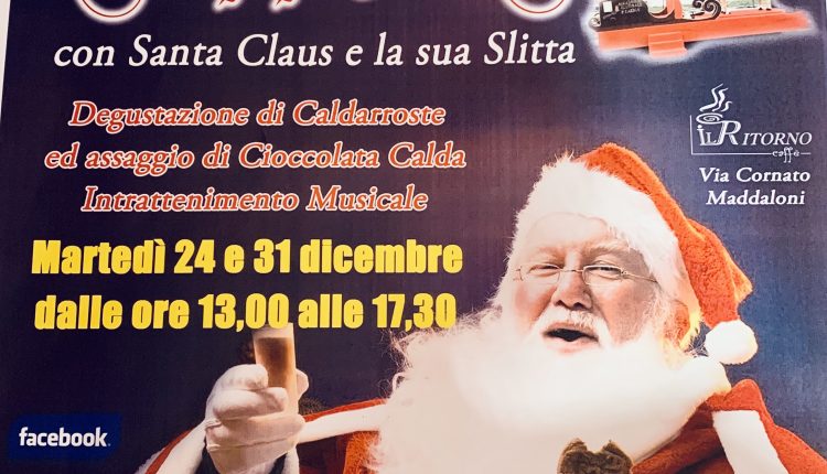 Santa Claus is coming to Maddaloni. Grandi e piccini subiscono il fascino di Babbo Natale e per incontrarlo il 24 e il 31 dicembre basta recarsi in via Cornato. L’associazione “ Pasquale Farina” con il patrocinio del comune di Maddaloni porterà Babbo Natale sulla slitta. Accompagnato dalle note di un sassofonista e con animazione anche per i più piccini. Cioccolata calda e caldarroste per tutti e prima di tornare a casa per il tradizionale cenone un brindisi augurale!
