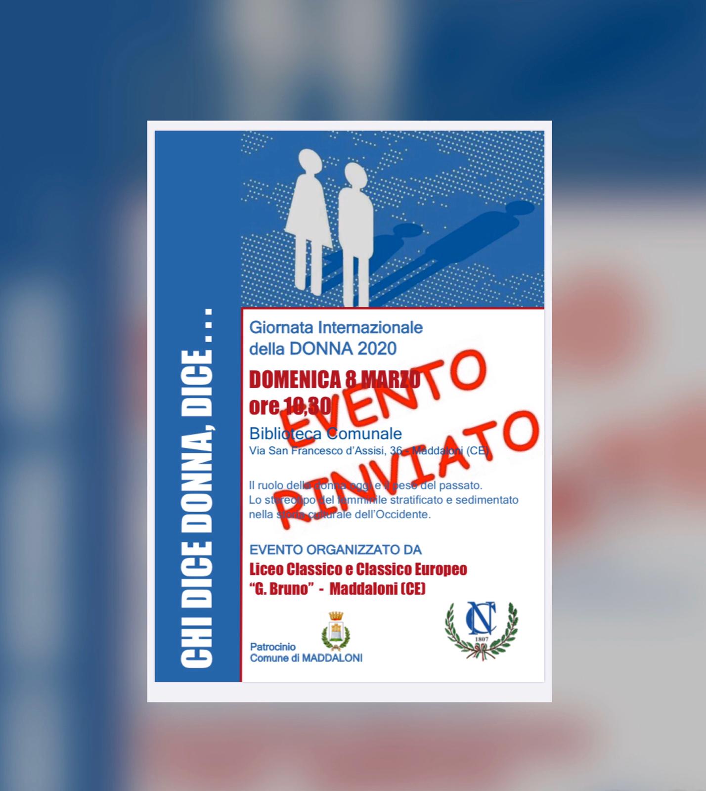 Riceviamo comunicazione di rinvio dell’evento organizzato per giorno 8 marzo di cui avevamo farò precedentemente notizia.