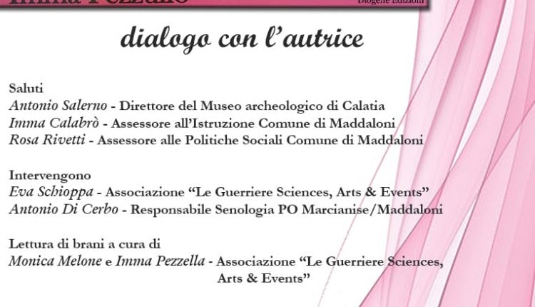 Con l’autrice dialogheranno: Antonio Salerno, direttore del Museo, gli assessori del Comune di Maddaloni, Imma Calabrò e Rosa Rivetti, il dott. Antonio Di Cerbo, responsabile Senologia PO Marcianise/Maddaloni, ed Eva Schioppa dell’Associazione “Le Guerriere Sciences, Arts & Events”.