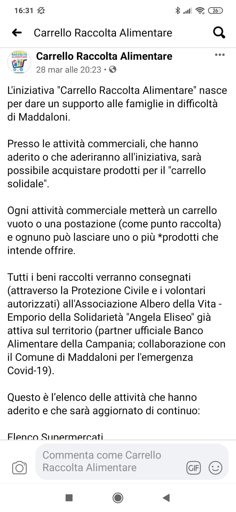 Comunichiamo che da stamattina l’iniziativa dei Briganti Calatini dal nome “Carrello raccolta alimentare” non sarà più a sostegno dell’associazione Albero della vita” ma continuerà ad essere a sostegno sia alla Protezione Civile sia a volontari che desiderino consegnare degli alimenti.
