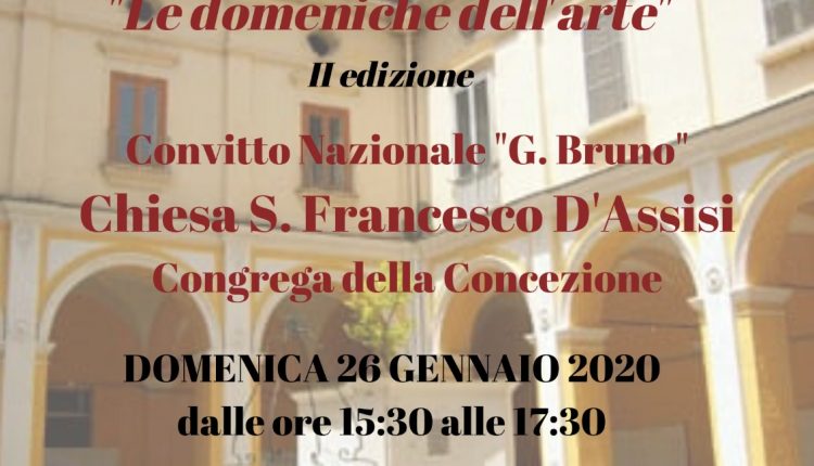 Il prossimo appuntamento della serie si terrà domenica 26 gennaio 2020 dalle ore 15,00 circa alle ore 17,30 e riguarderà il complesso francescano ovvero la chiesa secondo la tradizione fondata in origine dal Poverello di Assisi, il complesso del Regio Ginnasio Liceo “Giordano Bruno” e l’attuale Convitto Nazionale Statale “Giordano Bruno” ed ancora la Congrega dell’Immacolata Concezione sita nei pressi della chiesa nella strada omonima della dedicazione mariana e già dedicata precedentemente a San Michele Arcangelo.