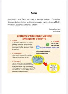 Sono ben 2 i servizi attivati a sostegno dei cittadini per fornire un supporto psicologico.