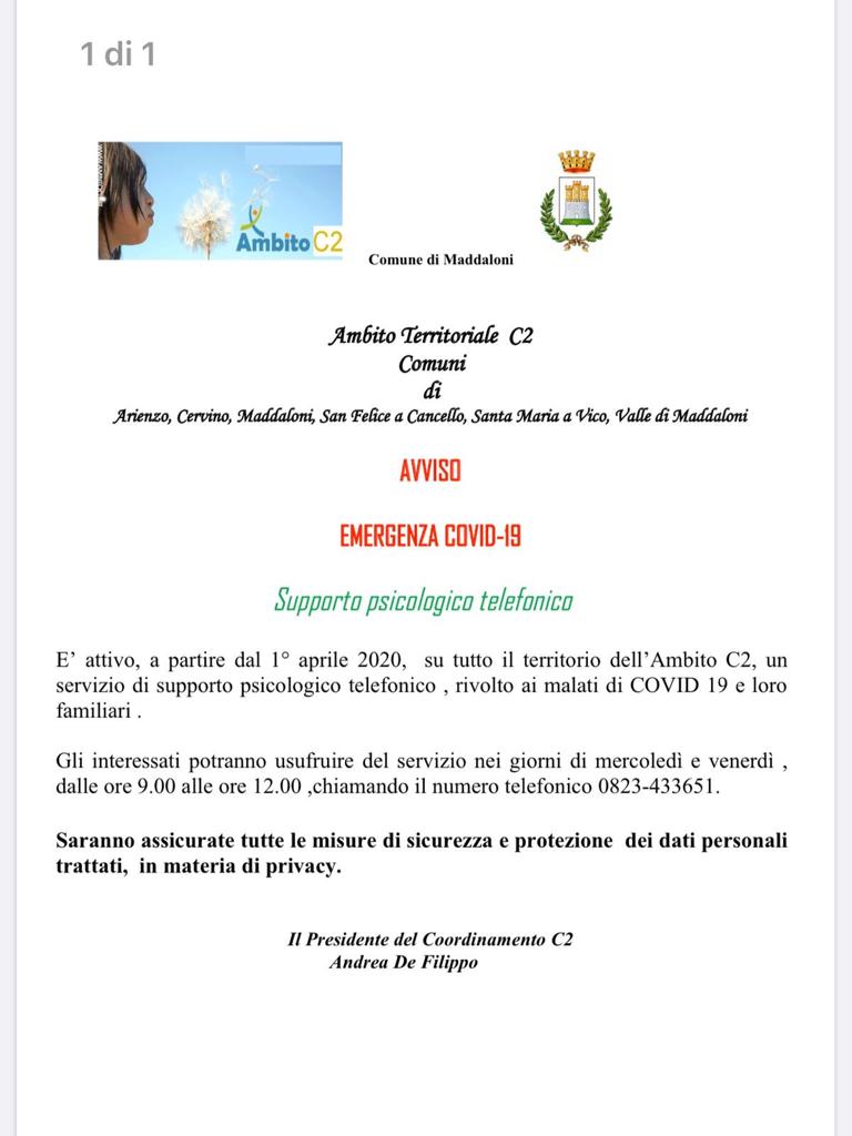 Sono ben 2 i servizi attivati a sostegno dei cittadini per fornire un supporto psicologico.