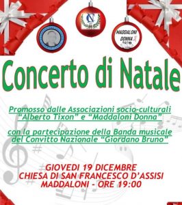 Maddaloni – Le associazioni “Alberto Tixon” e “Maddaloni Donna” organizzano il Concerto di Natale