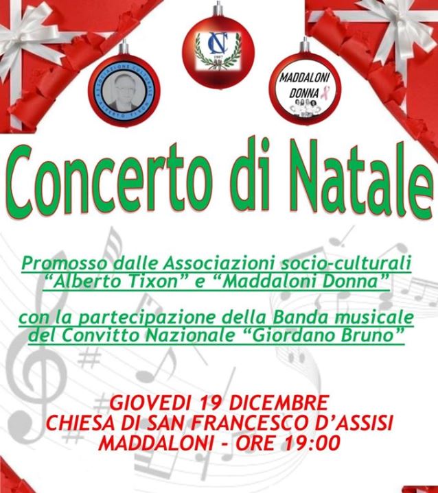 MADDALONI (CE) – Accogliere il Natale nel segno della musica e dei giovani. E’ da queste premesse che nasce il “Concerto di Natale”, promosso ed organizzato dalle associazioni socio culturali ‘Alberto Tixon’ e ‘Maddaloni Donna’, in collaborazione con il Convitto Nazionale ‘G. Bruno’. L’evento si basa sull’esibizione della ‘Banda Musicale del Convitto Nazionale ‘G. Bruno’, formata da alunni dell’istituto scolastico, diretta dai professori Luigi Pascarella e Domenica Papa, che si svolgerà giovedì 19 dicembre 2019. alle ore 19:00, presso la Chiesa di San Francesco d’Assisi.