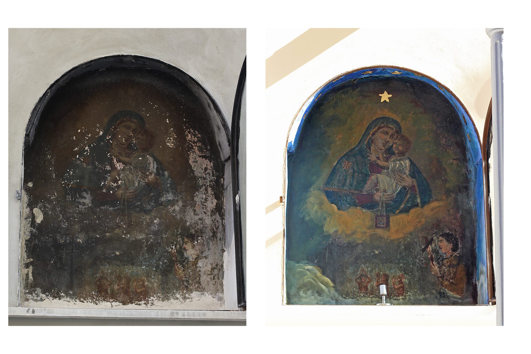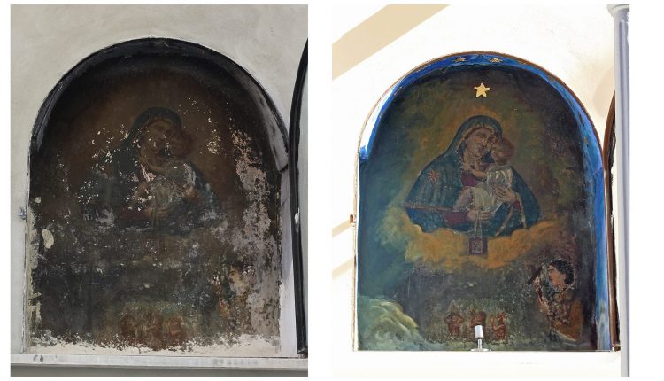 L ‘iniziativa  fortemente voluta e promossa da alcuni commercianti di via Amendola, è stata condivisa e sostenuta economicamente non solo da loro, ma anche da tanti fedeli e semplici passanti. Il restauro è stato eseguito dalla dott. ssa. Maria Grazia Mercurio.