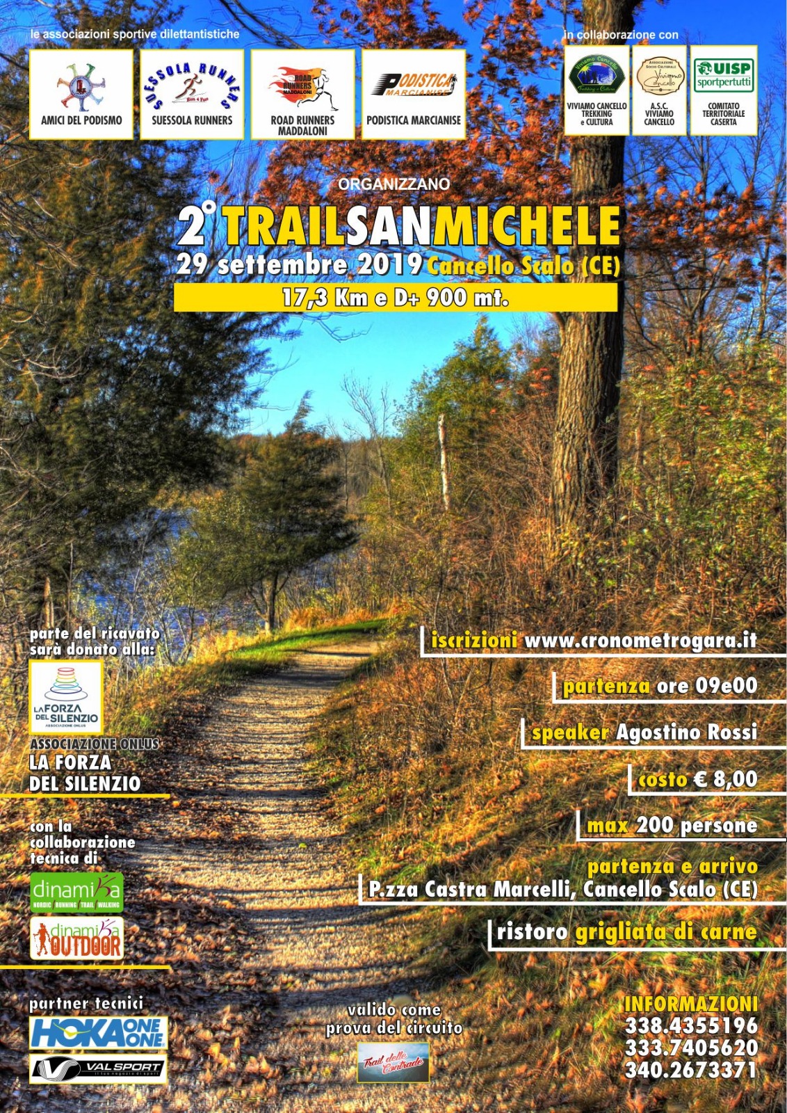 Gli Amici del Podismo, i Road Runners di Maddaloni, la Podistica Marcianise e la Suessola Runners di Santa Maria a Vico, presentano la seconda Edizione del Trail di San Michele, la maratona solidale che quest’anno donerà parte del ricavato delle iscrizioni all’Associazione “La Forza de Silenzio” di Casal di Principe che si occupa del disagio autistico, con l’intento di migliorare la qualità della vita dei ragazzi affetti da questo disturbo. Quando lo sport si unisce alla solidarietà e alla sensibilità delle persone si crea sempre un connubio vincente, destinato a restare nella memoria di tutti coloro che hanno contribuito. L’iniziativa benefica di raccolta fondi da destinare all’Associazione “La Forza del silenzio” rappresenta l’occasione per offrire un supporto concreto alle associazioni formate da volontari che operano sul nostro territorio a sostegno dei più deboli ma anche l’ulteriore dimostrazione che lo sport può rappresentare uno strumento decisivo per sensibilizzare i cittadini sul tema della salute e un fondamentale veicolo di solidarietà. Il percorso si snoda attraverso uno scenario di bellezze paesaggistiche e culturali di tutto rispetto che grazie ad iniziative del genere vengono “riscoperte”, pertanto, la manifestazione oltre a dare vita ad un momento di aggregazione, promuove il valore della solidarietà, il benessere psico fisico ed il patrimonio artistico e paesaggistico. Importante la collaborazione ormai consolidata con “ Trekking Cancello” e “ Viviamo Cancello”. La manifestazione si terrà il prossimo 29 settembre, nella locandina allegata i numeri da chiamare per informazioni e iscrizioni. Nella manifestazione, oltre alla corsa in montagna di km 17,300, vi sarà una camminata di 3 km in cui parteciperanno ragazzi autistici, operatori, genitori, bambini e adulti. Al termine della gara è previsto un ricco ristoro finale con panino con salsiccia arrostita e birra. Oltre alle classiche bevande, gelati e frutta.
