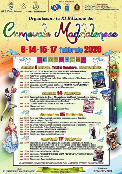 Con un programma che mescola sapientemente la comicità di Made in Sud, il ritmo di Gianluca Manzieri e il fenomeno ‘Mixed by Erry’, l’edizione 2026 punta a superare ogni record di presenze. La macchina organizzativa dell’APS Carnevale Maddalonese e dell’Amministrazione Comunale ha lavorato senza sosta per garantire uno spettacolo unico. Non resta che preparare i coriandoli: il divertimento sta per cominciare!