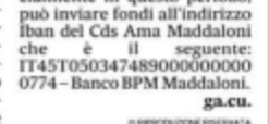 Per chi volesse effettuare donazioni di seguito trova tutti gli estremi per le coordinate bancarie.