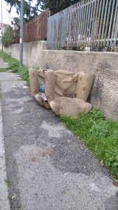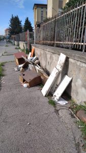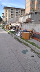 Nel frattempo dal lato opposto della città in una zona altamente popolose residenziale continuano a trovarsi sui marciapiedi mobili di vario genere. Anche qui i depositi Les versamenti sono oramai una triste abitudine alla quale pare non si riesce a porre un freno. Le foto che riportiamo sono state scattate sempre in data odierna, questa volta nella periferia est della città in via de Carlucci.