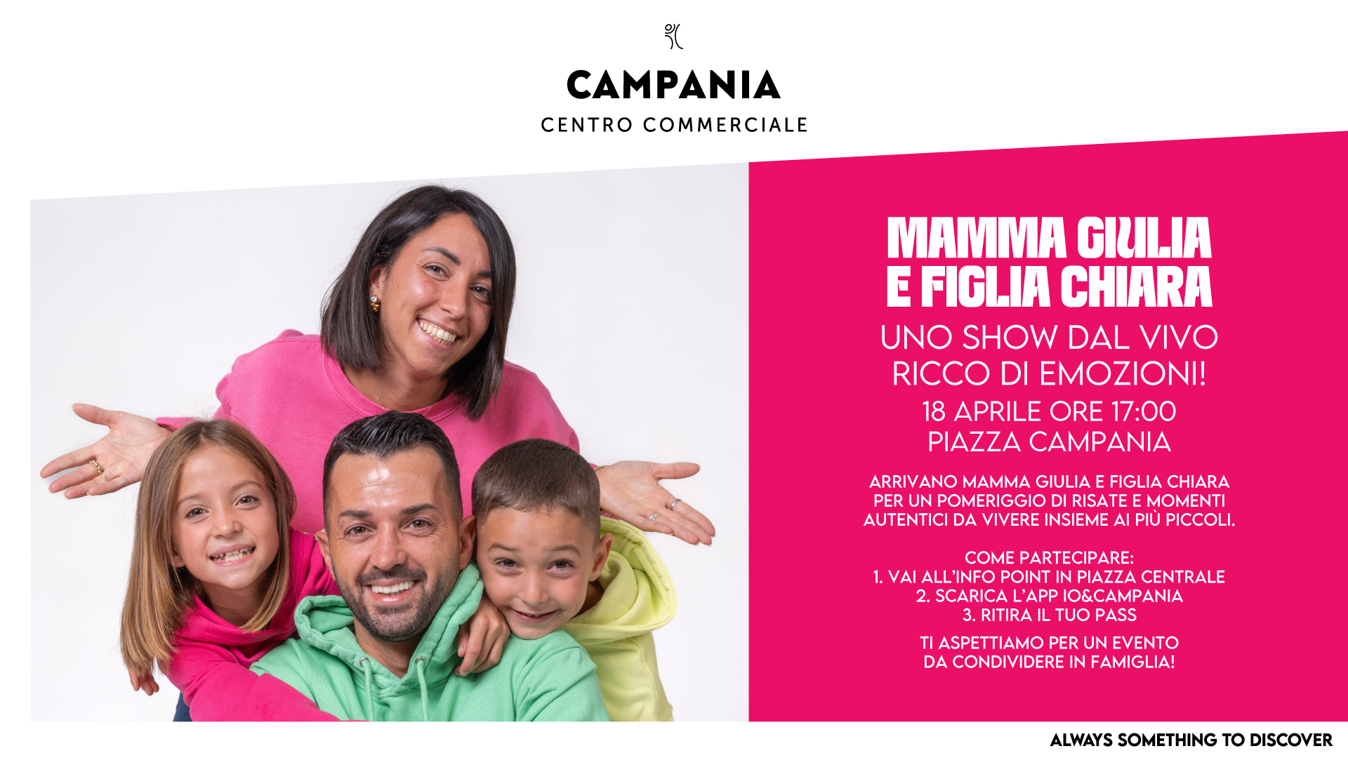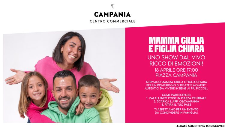 Sabato 18 aprile alle 17:00, Piazza Campania ospita Mamma Giulia e Figlia Chiara, protagoniste di un mini show dal vivo capace di trasformare la quotidianità in pura emozione.