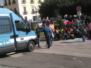 Caserta – manifestazione di protesta oggi fuori la sede della Prefettura e della Questura a Piazza Vanvitelli,  a protestare, pacificamente, nonostante uno spiegamento di forze dell’ordine, sono gli iscritti della CGIL di Caserta, alle prese con la mancata concessione e problemi di rinnovo del permesso di soggiorno.