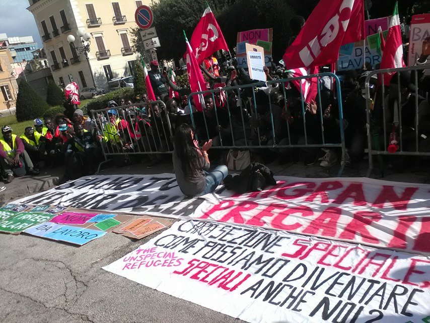 MANIFESTAZIONE DEGLI ISCRITTI EXTRACOMUNITARI DELLA CGIL DI CASERTA CHE NON RIESCONO AD OTTENERE I PERMESSI DI SOGGIORNO NEI TEMPI PREVISTI DALLA NORMATIVA