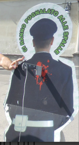 Stamattina l’ associazione nazionale guardie particolari giurate guidata dal suo leader storico Giuseppe Alviti e dal suo responsabile Regionale Ciro Riemma accompagnati da un folto gruppo di guardie particolari giurate hanno dimostrate solidarietà al collega in fin di vita al Cardarelli con l’ esposizione di un cartello a misura d’ uomo raffigurante la sagoma di una guardia accoltellata alle spalle a testimoniare della legiferazione attuale che non solo non valorizza la categoria ma non la informa e professionalizza relegandola anche dal punto di vista della tutela e della sicurezza.