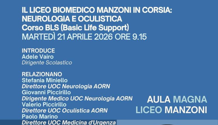 L’appuntamento è fissato per martedì 21 aprile 2026 alle ore 9.15, nell’Aula Magna dell’istituto, con un’iniziativa dal titolo “Il Liceo Biomedico Manzoni in corsia: neurologia e oculistica – Corso BLS (Basic Life Support)”. Un titolo che sintetizza l’identità del progetto: non una lezione tradizionale, ma un’esperienza formativa immersiva che porta gli studenti dentro la realtà ospedaliera.