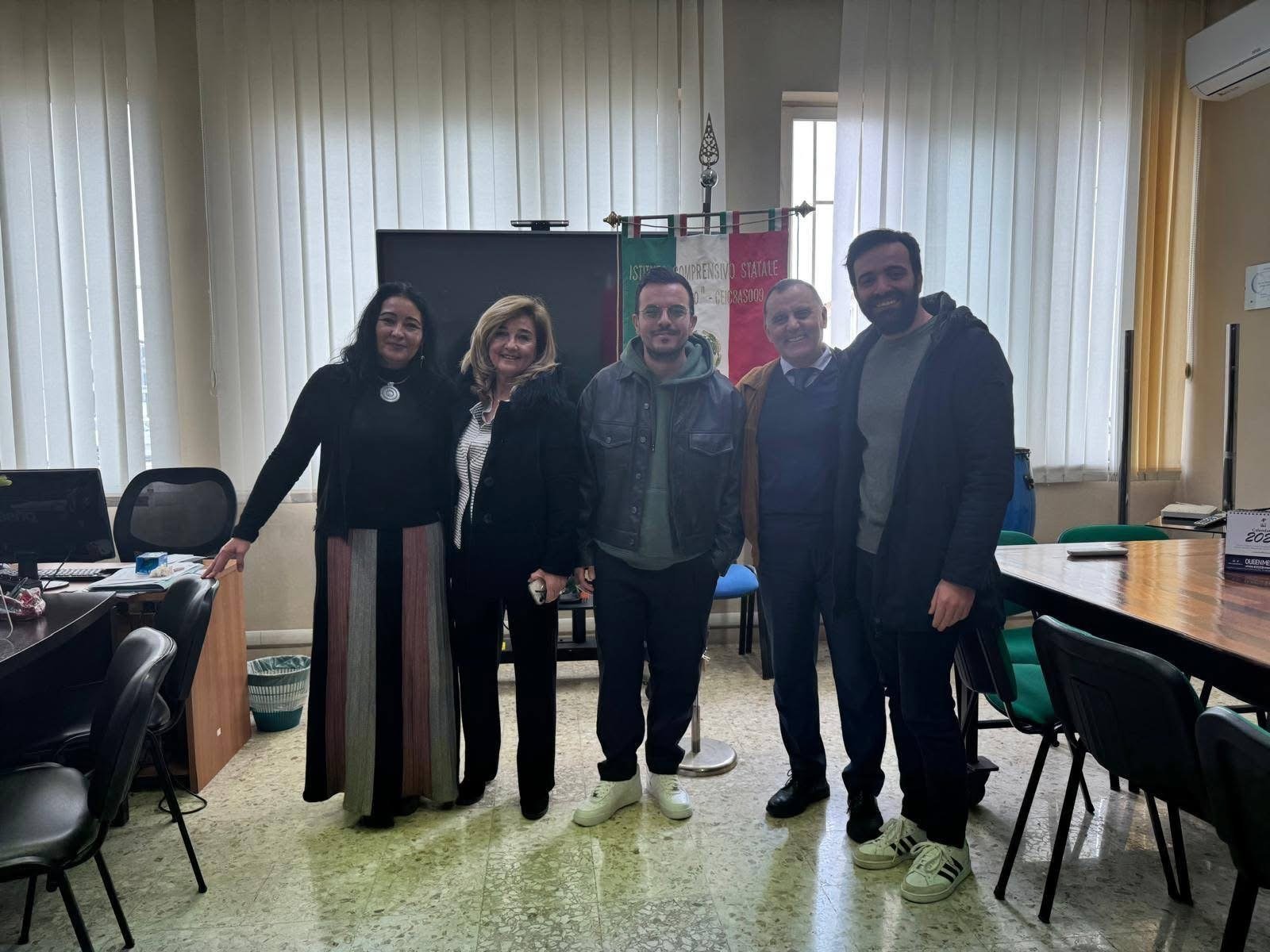 Questa mattina nell’aula magna della sede centrale di Via Tagliamento dell’I.C. “Aldo Moro” di Marcianise bagno di gioia ed affetto per il cantante Andrea Sannino. Gli alunni hanno letto il libro: “Prima di Abbraciame”, autobiografia scritta dal cantante Andrea Sannino, hanno ascoltato la storia della sua vita e delle sue esperienze , sono stati momenti di vulnerabilità e risate. Un inno all’amore e alla perseveranza perché ciò che vediamo, e soprattutto ascoltiamo oggi, è il risultato di ogni sfida affrontata in un percorso costellato di difficoltà, superate con dolcezza e determinazione. Il libro è un pezzo del cuore di Andrea Sannino; un regalo per tutti coloro che amano la musica e il potere che ha nel connetterci gli uni agli altri. E anche e soprattutto un invito per i nostri ragazzi a trovare la loro melodia in questo grande concerto che è la vita. L’evento si è svolto alla presenza dei moderatori: dott.ssa Gertrude Vollaro – Edizioni MEA, dott. Franco Simeri – Edizioni MEA seguiti dagli interventi :