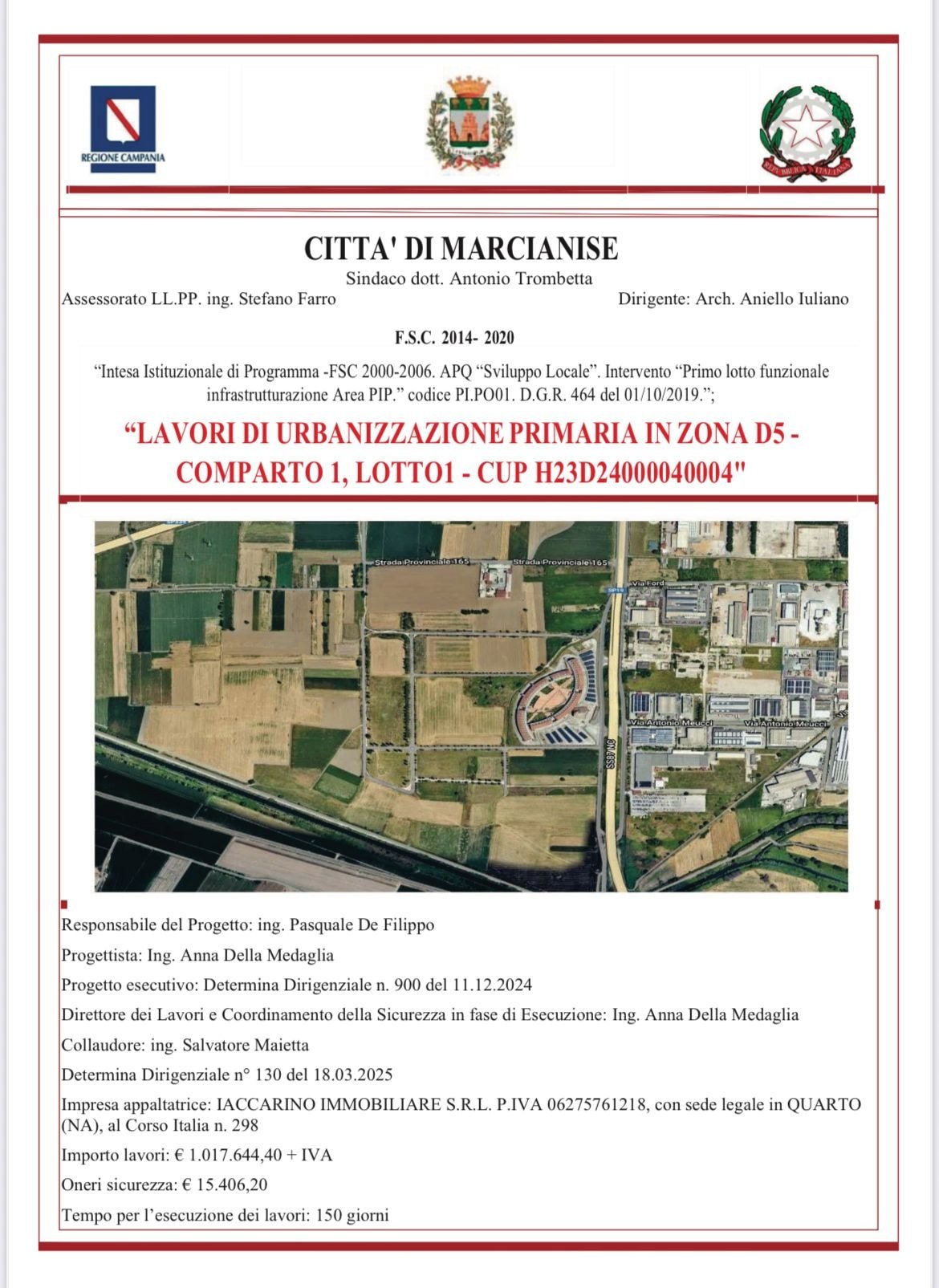 «Con questo intervento – ha aggiunto il Sindaco – puntiamo finalmente a completare una delle infrastrutture produttive più strategiche della città. Abbiamo scelto di investire risorse comunali, anche in assenza di finanziamenti immediati, perché crediamo che lo sviluppo di Marcianise passi dalla valorizzazione delle sue aree industriali. È una decisione di responsabilità, ma anche di coraggio e visione. Risanare quest’area significa riattivare economia, occupazione e fiducia.»