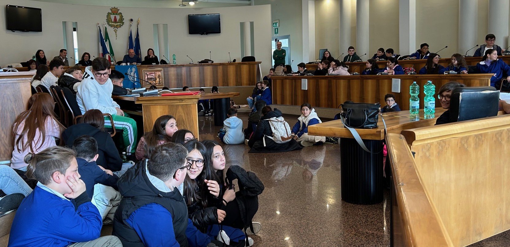 “Dalla marcia dei diritti, all’Aula Consiliare dipingiamo il mondo di blu per un futuro migliore”. Per la Celebrazione della Giornata Internazionale dei diritti dell’infanzia e dell’adolescenza, giovedì scorso l’I.C. “Aldo Moro” di Marcianise ha portato in marcia da Via Tagliamento sede centrale dell’Istituto alla casa comunale in Piazza Umberto I gli allievi di 5 anni della scuola dell’Infanzia, gli allievi delle classi V scuola primaria e gli allievi delle classi III scuola secondaria di primo grado in corteo si sono recati in piazza Umberto I, dove i più piccoli hanno cantato e espresso il loro grido sui diritti dei bambini. I più grandi invece hanno avuto poi un incontro nell’aula Consiliare del Comune, ponendo domande ai presenti, precisamente il Sindaco dott. Antonio Trombetta, il vice sindaco geom. Pasquale Salzillo, l’Assessore all’Istruzione prof.ssa Francesca Cicchella, il Presidente del Consiglio Comunale avv. Antimo Zarrillo e in rappresentanza dell’UNICEF Elda Cicala. Il Dirigente Scolastico dott. Lorenzo de Simone e la vice preside prof.ssa Marcella Tarigetto, che ha fatto da moderatrice, e tutti i docenti presenti, hanno assistito al dibattito avuto dai nostri alunni con le istituzioni con grande orgoglio, per aver saputo affrontare un argomento per loro importante: I DIRITTI DEI BAMBINI E DEGLI ADOLESCENTI. Ad allietare la giornata in apertura e chiusura del dibattito l’orchestra del percorso musicale dell’I.C. “Aldo Moro” diretta dai maestri Francesco Saverio Di Lillo (clarinetto), Domenico Birnardo (tromba), Enrico Fagnoni (pianoforte), Luigi Ciriello (violino), i giovani musicisti hanno eseguito l’Inno alla gioia di Beethoven e “Aria sulla quarta corda” di Bach.