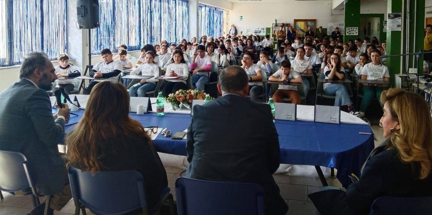 “Spazio aperto alla Toga” all’IC Aldo Moro di Marcianise il magistrato Catello Maresca ha presentato il suo libro “Lo Stato vince sempre”