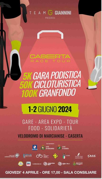 Si terrà, giovedì 4 aprile, alle ore 17 presso la Sala Consiliare, la presentazione del Caserta Race Tour, evento che vanta importanti partner e patrocini, tra cui il Comune di Marcianise, organizzato dal Team Giannini, che si terrà il prossimo 1 e 2 giugno.
