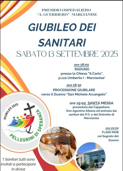 Segnaliamo un’iniziativa inedita e che promette grande coinvolgimento per la cittadinanza: sabato 13 settembre si svolgerà nel centro cittadino di Marcianise il Giubileo dei sanitari, promosso e organizzato dai dipendenti del Presidio Ospedaliero “Anastasia Guerriero” in collaborazione con il Distretto di Marcianise. La direzione è stata curata dalla dottoressa Laura Leoncini con il supporto del Direttore dell’UOC Anestesia e Rianimazione dottor Luigi Nuzzolillo e il cappellano dell’ospedale don Agostino Albano. Come e’ possibile leggere in locandina allegata, l’evento avrà inizio con raduno dei partecipanti alle 18 presso la Chiesa “S.Carlo” in piazza Umberto I. Seguirà la processione giubilare verso il Duomo “S. Michele Arcangelo” dove e’ prevista la Santa Messa presieduta dal cappellano don Agostino Albano ed animata dai sanitari del P.O. e del Distretto di Marcianise. Alle 20 e’ in programma un flash mob sul sagrato del Duomo. La celebrazione del Giubileo costituisce un’occasione di riflessione per ritrovare le motivazioni e le energie interiori, anche per chi lavora nel mondo sanitario che quotidianamente e’ chiamato a gestire la fragilità e la sofferenza. “In occasione del Giubileo degli ammalati e del mondo della sanità, siamo tutti chiamati a riscoprire il valore della speranza, della solidarietà e della responsabilità collettiva. È un tempo che ci sollecita a trasformare la speranza in azione, e l’azione in riforme concrete, capaci di rispondere ai bisogni reali delle persone”. Lo ha detto Giovanni Migliore, presidente della Federazione italiana aziende sanitarie e ospedaliere (Fiaso) a margine di un recente evento del Giubileo degli ammalati e della sanità. I sanitari tutti sono invitati a partecipare in divisa.