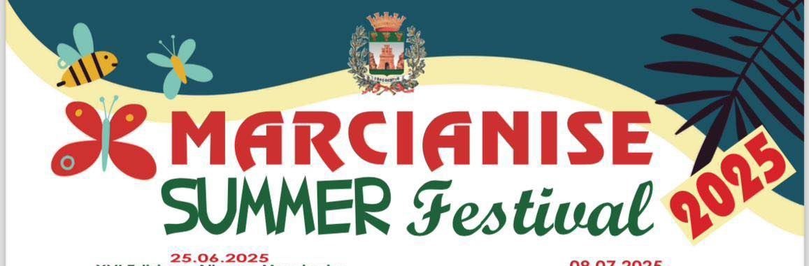 25.06.2025 VI Edizione Allegro Jazz: Karima Piazza Carità – ore 21.00, Majeutica; 26.06.2025; IV Edizione Nise Art Festival: Alfonso De Lucia, Pasquale D’Ambrosio, Palazzo della Cultura – ore 21.30 Associazione Musicale-Culturale Opere; 27.06.2025 IV Edizione Nise Art Festival: Pietro Adragna Palazzo della Cultura – ore 21.30 Associazione Musicale-Culturale Opere; 28.06.2025 Pilates, Parco Urbano – ore 9.00-11.30 Volontà Donna APS in collaborazione con Yourself Wellness; 29.06.2025 Tutta ‘nata storia in concerto per Pino Daniele Piazza Umberto I Duality Music Academy APS ore 19.30/22.00; 01.07.2025 XVI Edizione Allegro, Marcianise: Enrico Fagnoni Palazzo della Cultura – ore 20.30 Majeutica; 02.07.2025 “Tra musica e tradizioni” Centro Storico, via Marchesiello ZTL ore 20.00/24.00; 03.07.2025 “Emotivamente Summer – Laboratorio di pittura per bambini speciali” dalle ore 10.00 alle 12.00 Volontà Donna APS; 03.07.2025 IV Edizione Nise Art Festival Alan De Luca, Amedeo Colella, Lino D’Angiò Centro Storico, Via Marchesiello- via Mondo – ore 21.30 Associazione Musicale-Culturale Opere; 04.07.2025 La differenza “Talk, spettacolo e Reading” Palazzo della Cultura – ore 19.00/21.00 Teatro Distinto; 04.07.2025 IV Edizione Nise Art Festival U.S. Naval forces, Topside Brass band Centro Storico Via Marchesiello- via Mondo ore 21.30 Associazione Musicale-Culturale Opere; 09.07.2025 Emotivamente Summer – Laboratorio di pittura per bambini speciali, Sede Volontà Donna APS – ore 10.00/12.00; 09.07.2025 “IV Edizione Nise Art Festival” Antonio Calò in arte Bungaro, Sagrato del Duomo, Via Duomo – ore 21.30 Associazione Musicale-Culturale Opere; 10.07.2025 IV Edizione Nise Art Festival Novecento Combo Band Sagrato del Duomo, Via Duomo – ore 21.30 Associazione Musicale-Culturale Opere; 11.07.2025 IV Edizione Nise Art Festival – Ciccio Merolla Piazza Atella/Via Mundo – ore 21.30 Associazione Musicale-Culturale Opere; 17.07.2025 CineRisvegli Fest Palazzo della Cultura Associazione Risvegli Culturali APS ore 18.00/24.00; 24.07.2025 CineRisvegli Fest Palazzo della Cultura Associazione Risvegli Culturali APS ore 18.00/24.00; 4-5-6-7.09.2025 XXI Edizione Sagra della Rana Via L. Fuccia – Area Mercato; 06.09.2025 Memorial M.F. Marchesiello, Chiesa di San Simeone Associazione Musicale “Ugo Valerio” ore 19.00/21.00; 14.09.2025 Concerto Cover Band Lucio Battisti, Palazzo della Cultura Nuovo Leopoldo Mugnone APS; 16.09.2025 Gran Concerto S.S. Crocifisso 2025 Chiesa di San Carlo Associazione Musicale Francesco Busacca ore 19.30/21.30; 26-27.09.2025 IV Edizione “Marcianise Blues Festival” Piazza Umberto I – Associazione Amarcord.