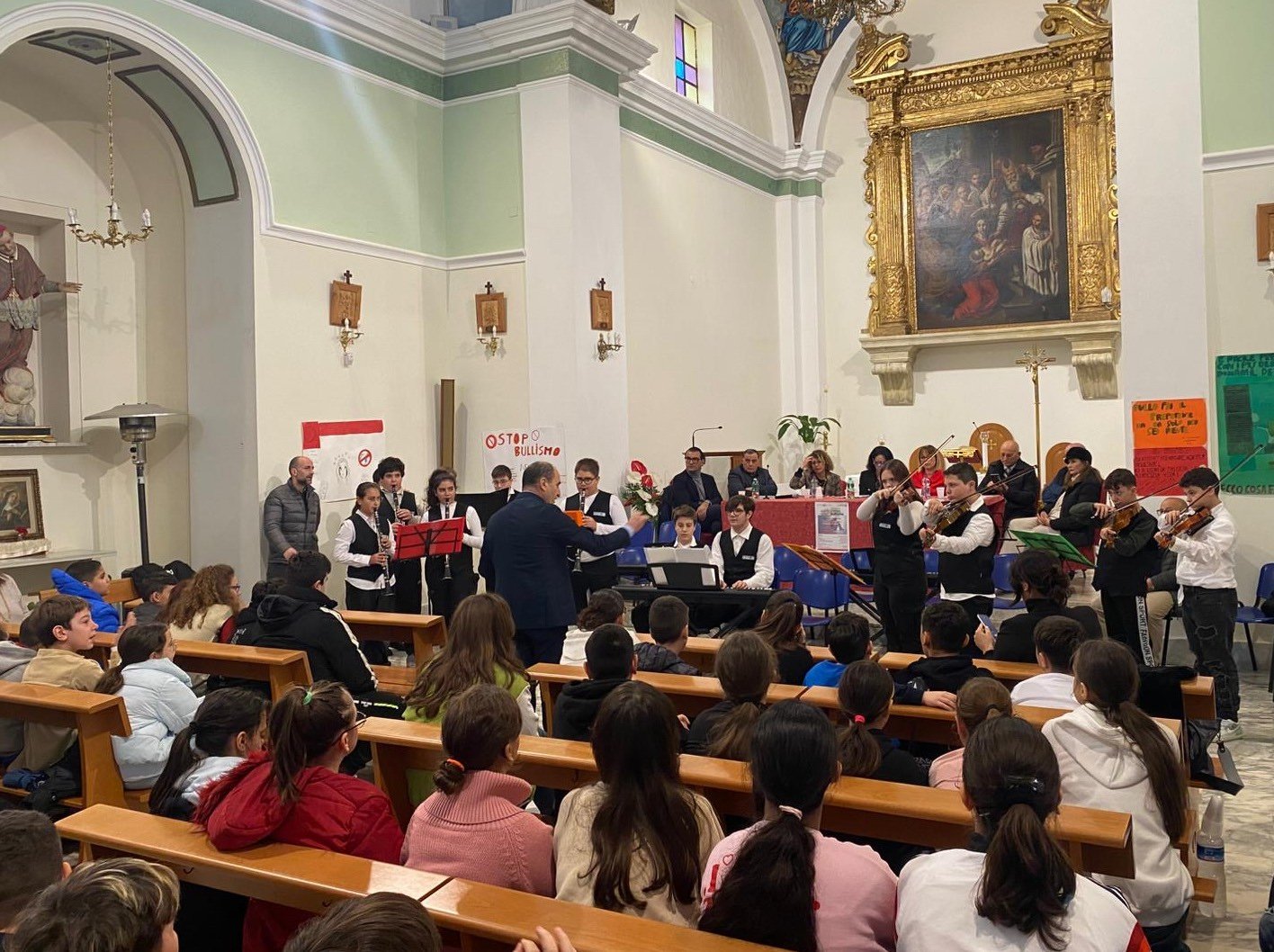 Gli alunni dell’Istituto Comprensivo I.C. “Aldo Moro” nello specifico della Secondaria di primo grado del plesso “Pisacane” e una rappresentanza di alunni di strumento e altri, Secondaria primo grado plesso Moro, insieme agli alunni dell’I.C. Calcara anch’essa ad indirizzo musicale, presso la Parrocchia San Simeone Profeta di Marcianise, hanno partecipato al convegno sul bullismo e cyberbullismo. Gli alunni hanno posto domande molto interessanti ai relatori presenti: Avv. Clelia Tessitore, Dott.ssa Zarrillo Lucia, il Dirigente Scolastico dell’I.C. “Aldo Moro” dott. Lorenzo de Simone, la Dirigente Scolastico Francescaromana Boccini dell’I.C. “Calcara” invece aveva in sua rappresentanza la vice Grazia Fuccia, l’Arbitro internazionale di pugilato Antimo Di Fuccia, moderatrice dell’incontro Nunzia Golino. In apertura hanno suonato i musicisti dell’I.C. Calcara diretti dal maestro Davide Izzo, in chiusura i musicisti dell’Istituto di Via Tagliamento che hanno eseguito “Aria sulla quarta corda” di Bach; a dirigere il maestro Francesco Saverio Di Lillo (clarinetto) coadiuvato dai maestri Domenico Birnardo (tromba), Enrico Fagnoni (pianoforte), Luigi Ciriello (violino).