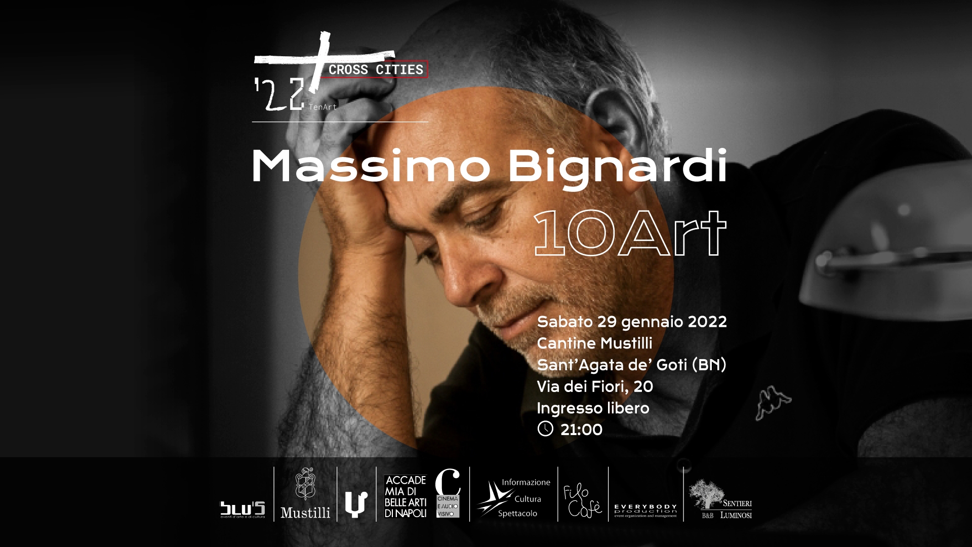 S. Agata dei Goti- Con il primo appuntamento di sabato 29 gennaio 2022 Cross Cities si propone come incubatore ed attrattore culturale permanente. I dieci incontri presentati nel progetto dal titolo 10Art, che si svolgeranno tutti presso le Antiche Cantine Mustilli di Sant’Agata De’ Goti (BN), avranno come primo ospite del cartellone Massimo Bignardi, critico dell’arte e professore di Storia dell’Arte contemporanea e di Arte ambientale e Architettura del paesaggio presso l’Università di Siena. Dal 2002 dirige il FRAC (Museo – Fondo regionale d’arte contemporanea) a Baronissi (SA). Bignardi è autore di diversi testi e curatore di importanti collane d’arte contemporanea e di significative mostre. L’ultimo lavoro editoriale del 2021 è “La città di Atlantide. Arte ambientale, processi di democratizzazione e ornamento urbano”.