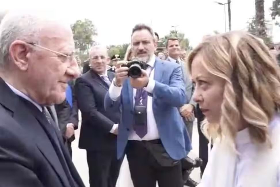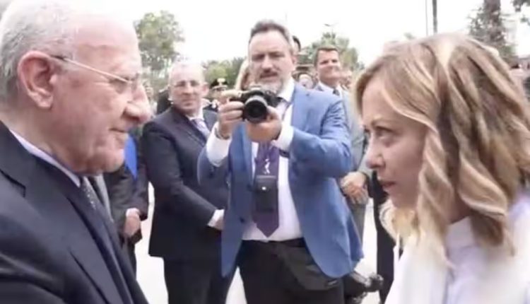 Prima di andar via la Premier ha salutato il Governatore stringendogli la mano e dicendogli “Presidente De Luca, sono quella stronza della Meloni. Come sta?”.