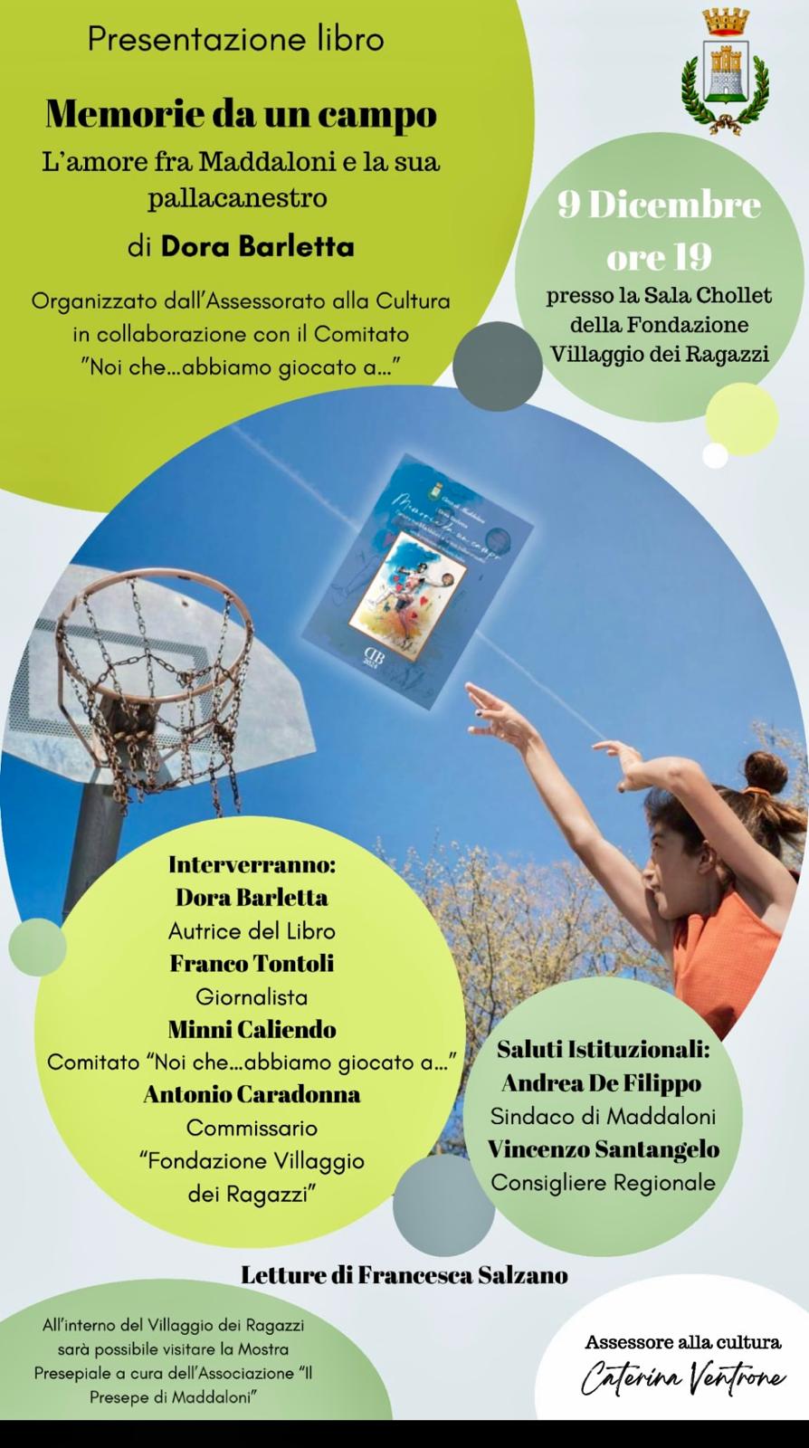 “Memorie da un campo” ovvero “L’amore fra Maddaloni e la sua pallacanestro” è il titolo dell’ultima indagine storica e fatica letteraria di Dora Barletta, un altro tassello dell’identità cittadina proposta e offerta agli appassionati e no dalla scrittrice casertana dalle solide origini maddalonesi.