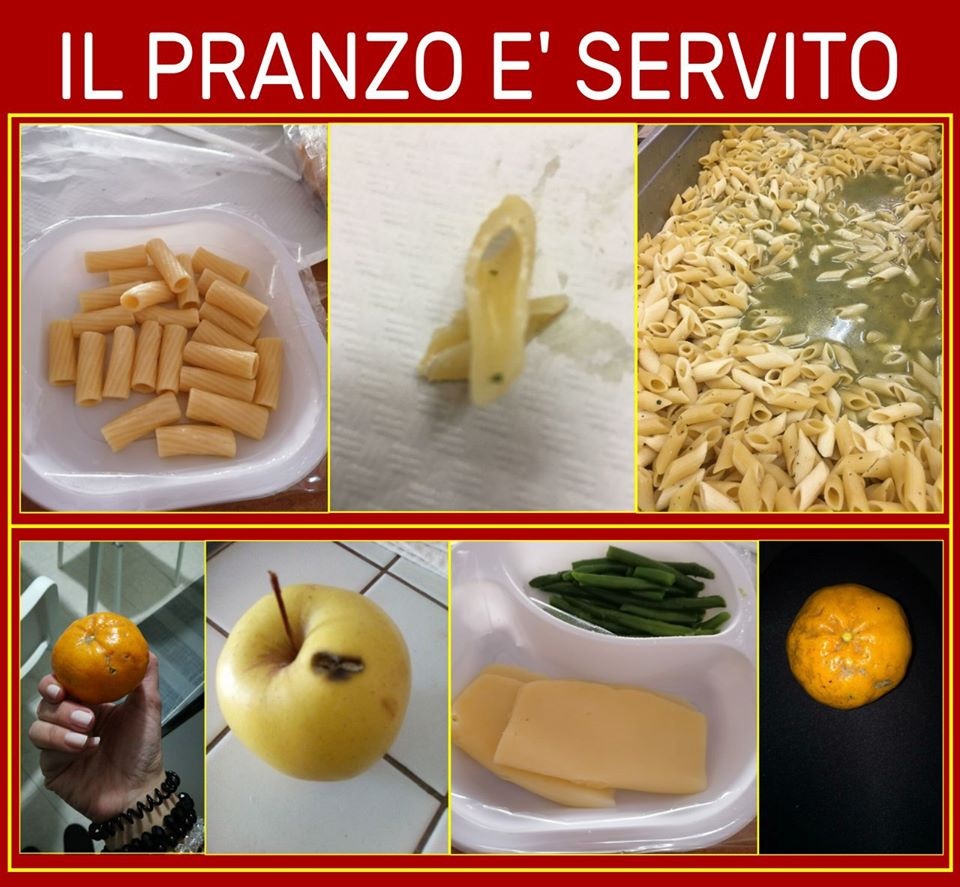 Nel frattempo molti genitori, pur di evitare che i figli mangiassero a scuola, continuavano a ritirarli anzitempo e una loro delegazione si spinse fino al centro di cottura. La sortita determinò un temporaneo miglioramento del vitto. Fumo negli occhi! La buona cucina ha avuto vita breve. Lunedì ci sono pervenute altre foto, alcune delle quali allegate, che ribadiscono la pessima qualità del cibo erogato ai nostri bambini. Eppure, domenica scorsa, il Sindaco ha annunciato il buon esito d’un’ispezione effettuata dai NAS.