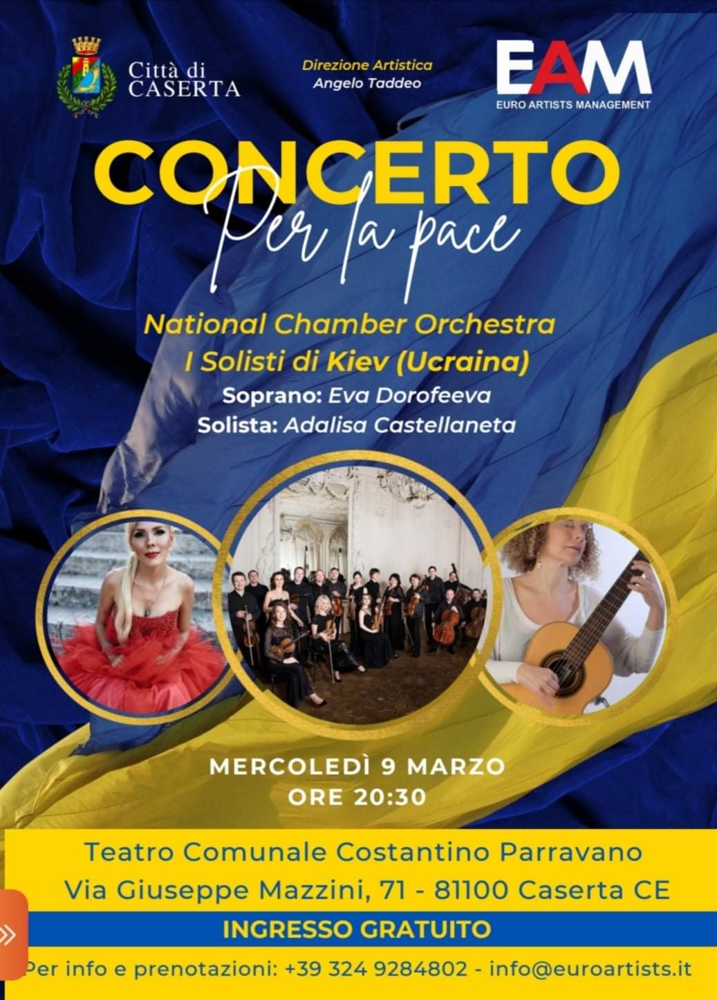 L’Amministrazione comunale ringrazia l’architetto Salvatore Natale ed il direttore artistico Angelo Taddeo per aver promosso e offerto alla Città di Caserta il Concerto della Pace, evento che al di là dell’elevato profilo dei musicisti che saliranno sul palco, rappresenta, in questi giorni drammatici per l’Ucraina e per l’Europa intera, un momento di altissimo valore sociale.