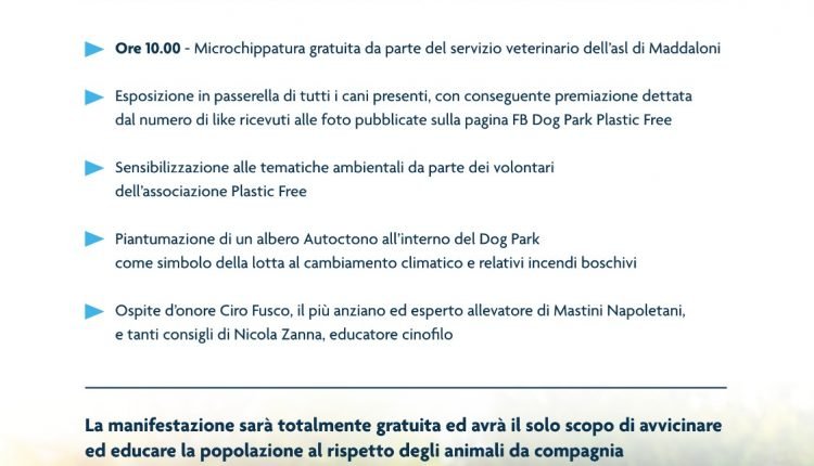 – Vi aspettiamo alle ore 10:00 presso il Dog Park Plastic Free di Maddaloni sito in via Matilde Serao.