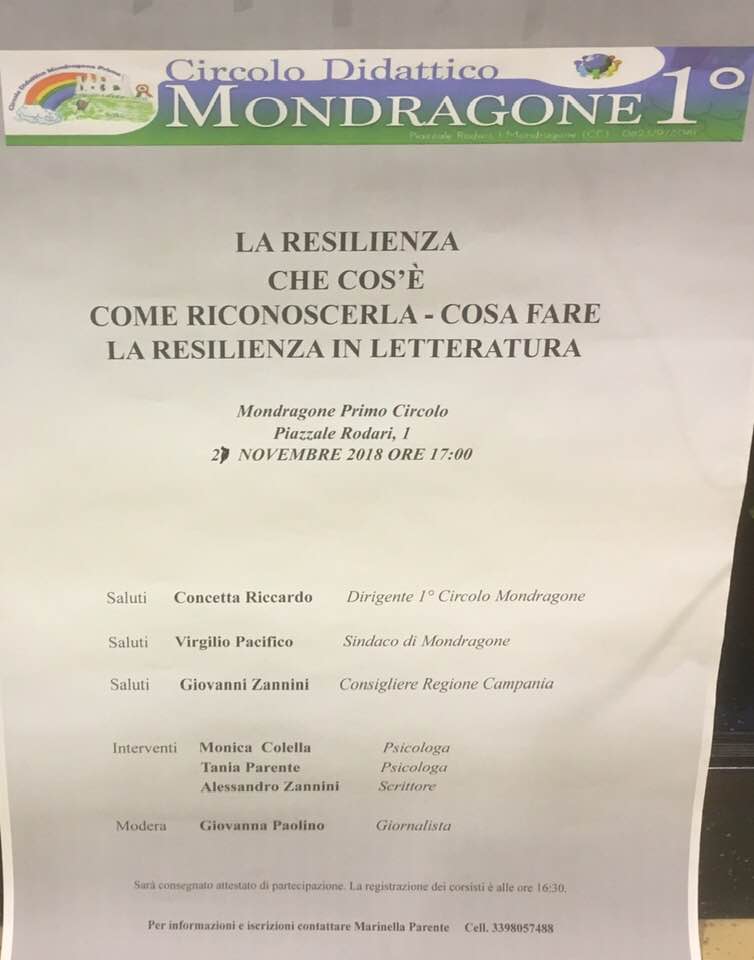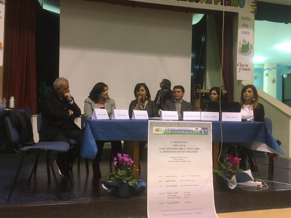 Enorme successo ha riscosso il seminario sulla Resilienza organizzato dalla Direzione del 1° Circolo Didattico di Mondragone. Il salone “E. Fusco” era gremito di docenti e di alunni di vari Istituti locali, numerosi quelli dell ‘ ” Isiss N. Stefanelli” diretto dalla Prof.ssa Giuseppina Casapulla.