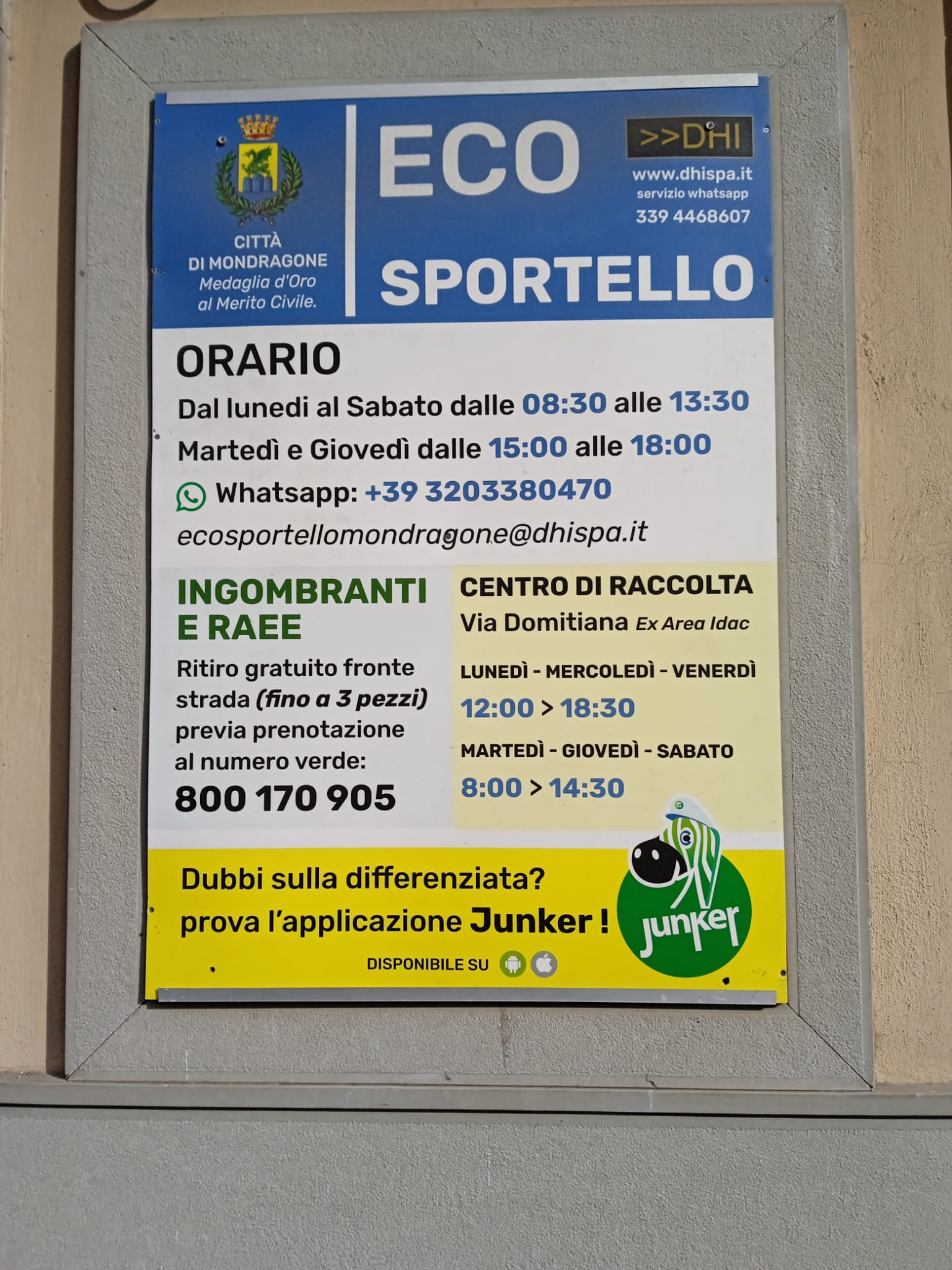 Proprio stamattina avevo deciso di recarmi dove distribuiscono le buste della spazzatura per la differenziata e per informarmi a puntino sulle nuove disposizioni messe in atto per rispondere alla bisogna, visto che da un po’ di tempo che ci sia una certa crisi ed un altrettanto chiara inefficienza del servizio di raccolta e smaltimento, risulta a tutti abbastanza chiaro. Il tutto parte da ieri sera quando, tra il primo ed il secondo tempo della partita della nazionale, mi sono accinto a portare giù la busta della indifferenziata che, come da programma a me noto, ma, probabilmente non corretto, pensavo si potesse smaltire la busta negli appositi contenitori. Questi ultimi, tra l’altro, erano prima presenti lungo la domitiana all’angolo nord del palazzo Miramare, ed inizialmente erano in numero cospicuo ed anche distinti per tipo di rifiuto, organico, indifferenziato, carta e vetro. Vero è che non tutti gli utenti rispettavano la differenziazione del bidone dove conferire i propri sacchetti, tant’è non mi è mai riuscito di trovare libero il bidone del vetro almeno nel giorno deputato alla raccolta di tale materiale…e che molti, pur non abitando in zona e magari ‘clandestini’ come utenti del servizio, nel senso che non risultano censiti dall’ufficio tributi pur abitando nel comune, e quindi che evadono al 100% Tarsu, Tasi e quant’altro, sversavano i rifiuti per terra, con sacchetti aperti e tutt’altro riempiti in maniera differenziata, provocando le giuste rimostranze soprattutto degli abitanti del palazzo Miramare ma anche di tutti coloro che abitano stabilmente in loco e vedono dunque di cattivo occhio lo scempio dei rifiuti abbandonati, anche sul piccolo marciapiede della discesa a fianco della pasticceria Pirozzi, a qualunque ora del giorno e della notte. Gli stessi bidoni, dal servizio raccolta, erano stati prima ridotti di numero, poi, bonificato il posto anche con calce viva, erano stati spostati , prima dal lato opposto sempre nei pressi del palazzo Miramare ma dal lato dei garage che si trovano ai piedi della rampa lato mare, non più sulla Domitiana. Poi, il giorno successivo, sono stati portati, sempre a ridosso del palazzo Miramare, che raggruppa stabilmente il grosso degli utenti fissi del circondario tra Domitiana e viale Europa, a metà discesa, proprio sotto una finestra del seminterrato senza infissi esterni, ma a giudicare dal fatto che non c’è mai nessuno, né una luce accesa, facente parte di un locale disabitato. Mentre passavo per andare a depositare colà il mio sacchetto con l’indifferenziata, esce un addetto alla vigilanza che mi intima di non depositare il sacchetto perché i contenitori sono già pieni e bisogna aspettare che vengano svuotati dal servizio di raccolta. E poi mi informa che la indifferenziata si ritira il mercoledì, cosa che sapevo anch’io. E mi sono permesso di obiettare che io sapevo che il giorno indicato nel programma settimanale di raccolta, doveva essere inteso come la sera precedente tra le 21,30 e le 22,30, per consentirne la raccolta dalle prime ore del mattino. “ Niente affatto- mi rintuzza la guardia giurata- se sta scritto mercoledì , lei la deve mettere tra le nove e mezzo e le dieci e mezzo di sera, come dice lei, e la raccolta la fanno subito dopo la sera, ma oggi non è mercoledì, è martedì, quindi si riporti indietro il suo sacchetto, che verrà a depositare domani sera a quest’ora.” . Ho prontamente eseguito e sono tornato indietro col sacchetto lasciandolo a casa. Però, mi sono ripromesso, domani mattina, oggi, voglio andare proprio dove mi ha spiegato che dovessi andare per maggiori e più sicure informazioni sul calendario di raccolta ed anche per ritirare le apposite buste, che, le ultime volte che mi sono recato per poterle ritirare, non c’erano mai. Poi c’è stato lo spostamento dell’ufficio preposto da via Udine a via Benevento e adesso in piazza, avevo perso un po’ le coordinate. Ovviamente le mie coordinate di pagamento della Tarsu, Tasi e Imu, da parte dell’Ufficio Tributi, invece, erano regolarmente intatte, per essendomi trasferito per mie esigenze abitative personali, in pochi anni da via Monte Mileto, a via Campanile ed infine adesso a via B. Croce. Anzi, durante il COVID in cui non era possibile accedere agli uffici neppure per appuntamento, mi avevano accollato sia l’utenza di via Campanile che quella di Via B. Croce , cioè quella che avevo lasciato e quella dove ero andato ad abitare, sed transeamus igitur. Vado stamattina in piazza …e mi faccio una bella lettura del cartello affisso dal titolo pretenzioso di ECO SPORTELLO, a fianco di uno degli ingressi dell’ex comando dei VV.UU., tutti chiusi a chiave. Il cartello diceva che dal lunedì al sabato dalle ore 8,30 alle ore 13,30 lo sportello avrebbe dovuto essere aperto…e invece era chiuso. Il numero Whatsapp fornito nel medesimo cartello, non solo no rispondeva, ma diceva addirittura che il numero era o inesistente o al momento non disponibile. Stavo per andarmene, pive nel sacco, quando vedo un’altra persona, un disgraziato come me, ho pensato, che fermata una macchina dei vigili urbani che passava, ha fatto le sue doglianze. Mi sono avvicinato a quello che pensavo fosse un mio compagno di sventura nel segno della monnezza, invece la situazione del Sig. Antonio Capuozzo, ex custode del Cardarelli di Napoli oramai in pensione, visti i suoi dichiarati 74 anni, residente a Mondragone in viale Europa, 21 e questi invece mi ha detto che erano dieci giorni che non riusciva ad accedere all’attiguo ufficio dei messi comunali, anch’esso situato sulla porta accanto dell’Eco sportello, sempre nei locali dell’ex sede dei vigili, che, sempre secondo un altro apposito cartello, doveva essere aperto dalle 8 alle 10. Io ho incontrato la persona intorno alle 9, 30 circa, ma il Capuozzo mi ha ribadito che lui si trovava lì dalle 8, e che erano dieci 10 giorni che, evidentemente in sua precaria assenza, aveva t