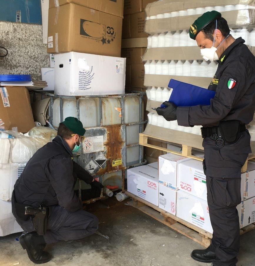 Solo pochi giorni fa era apparso sui giornali locali un articolo che parlava della riconversione dell’impresa ispezionata alla produzione di un igienizzante, L’iniziativa veniva segnalata come un esempio di generosità con finalità no profit in quanto il titolare dichiarava di averlo ceduto gratuitamente a forze di polizia, organizzazioni di volontariato e perfino ad ospedali, anche se già da alcune settimane lo stesso prodotto veniva venduto a prezzo di mercato sui principali siti di vendita on line.
