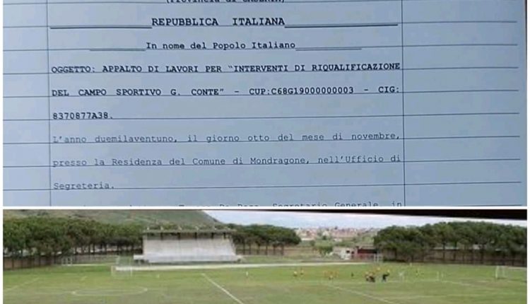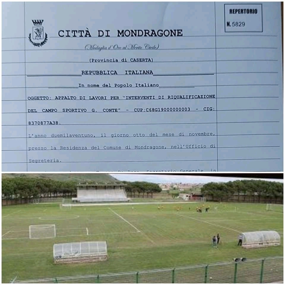 Firmato in Municipio il contratto di affidamento dei lavori di ammodernamento dello stadio cittadino di Mondragone, i cui lavori prevedono il rifacimento degli spogliatoi, la realizzazione di quattro torri faro – per l’utilizzo anche notturno – e il nuovo manto erboso in sintetico. Tali lavori, dell’importo complessivo di circa un milione di euro, permetteranno alla città litoranea di avere uno stadio comunale con pochi eguali nell’intera provincia di Caserta, consentendo – a chi lo utilizzerà in futuro – di non sfigurare con nessun altro competitor sportivo.