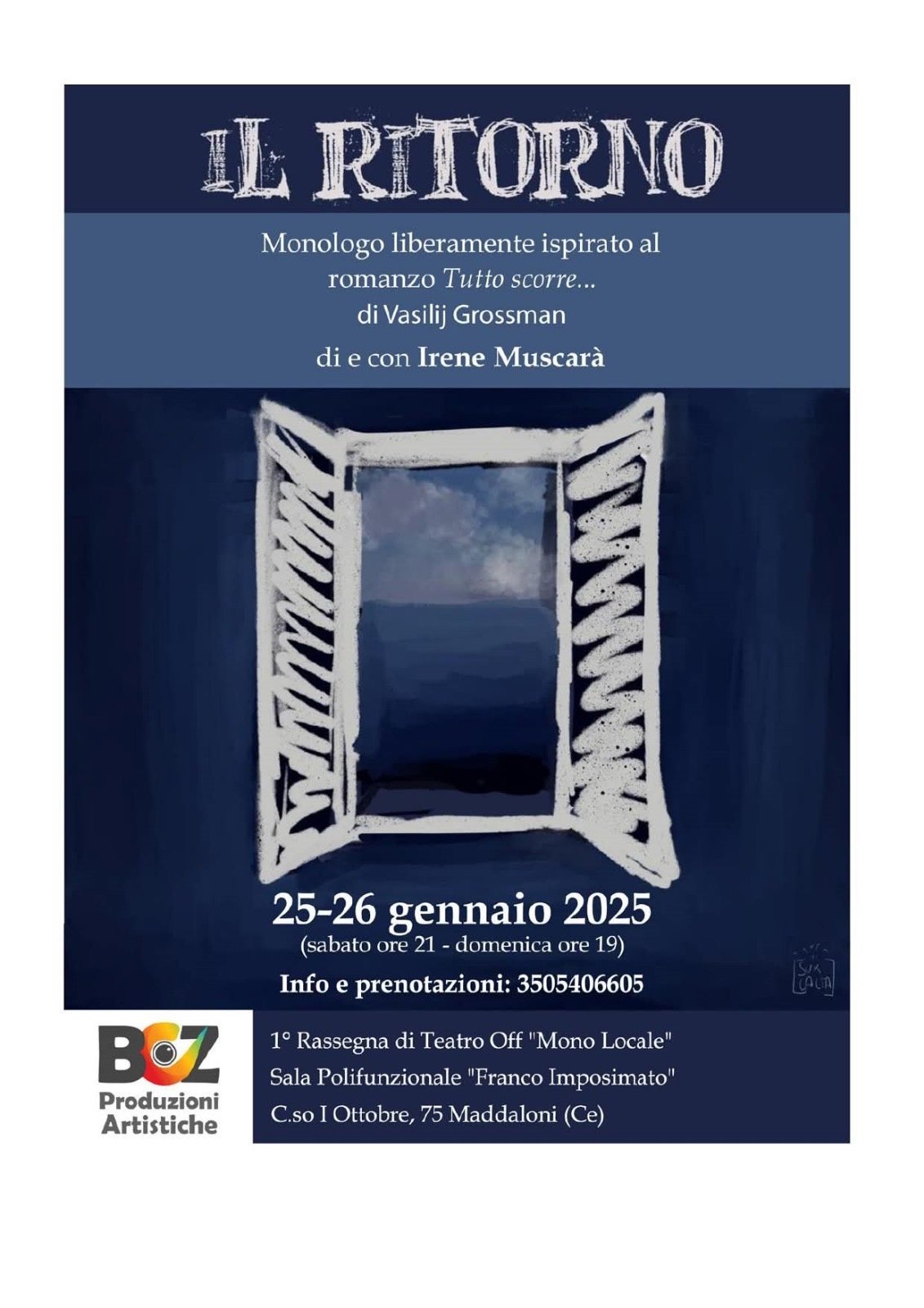 Maddaloni – Sabato 25 gennaio 2025 ore 21 e Domenica 26 gennaio 2025 alle ore 19 al Centro Polifunzionale “Franco Imposimato” – Maddaloni (CE), la BOZ Produzioni Artistiche è entusiasta di aprire la sua Prima Rassegna di Teatro Off “MonoLocale” con un emozionante monologo che affronta temi universali di libertà, sofferenza e speranza. Il Ritorno di e con Irene Muscarà, uno spettacolo intenso e riflessivo, si terrà sabato 25 gennaio alle ore 21 e domenica 26 gennaio alle ore 19, presso il Centro Polifunzionale “Franco Imposimato” di Maddaloni.