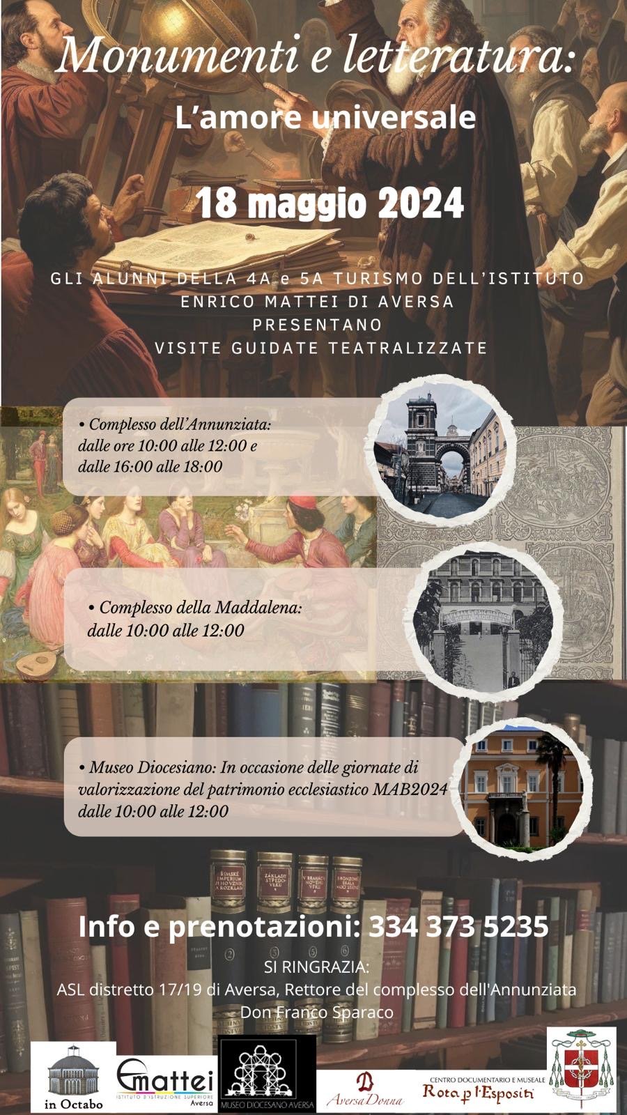 Monumenti e letteratura: l’amore universale questo è il titolo dell’evento organizzato dall’I.S.I.S.S.  E. Mattei di Aversa in collaborazione con l’Associazione turistico-culturale “IN OCTABO”, il Museo Diocesano di Aversa, l’Associazione “AVERSADONNA”, il Centro Documentario e Museale “ROTA DEGLI ESPOSITI” e l’A.S.L.: DISTRETTO 17/19 di Aversa.