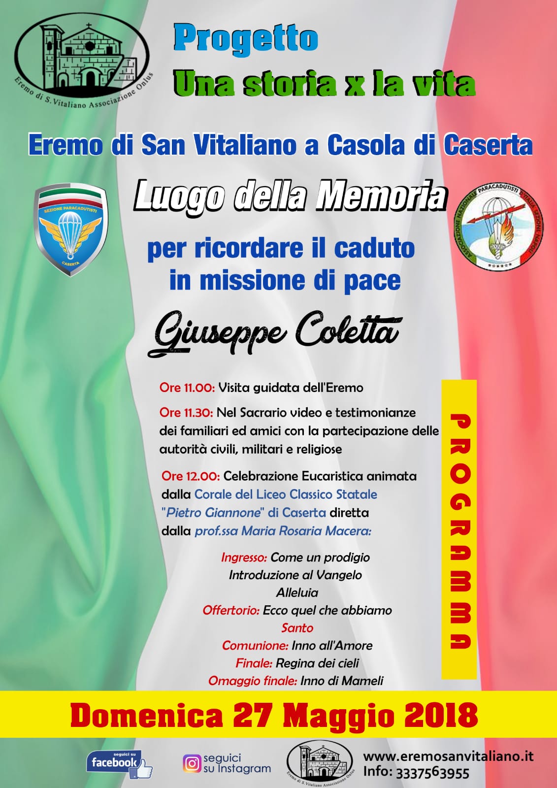 L’appuntamento è alle 11:00 al Sacrario, fa sapere Don Valentino, che inoltre invita tutti a partecipare alla messa che si terrà alle 12:00 nello stupendo Eremo di San Vitaliano. La celebrazione liturgica sarà animata dalla Corale del Liceo “Pietro Giannone” di Caserta, diretti dalla prof. Maria Rosaria Macera.