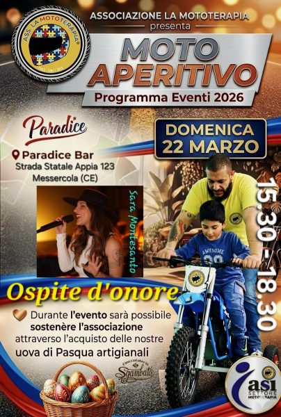 Domenica 22 marzo dalle 15.30 in poi, presso il Bar Paradice, in Via Nazionale Appia 123 a Messercola (CE), l’Associazione offre un aperitivo a tutti e presenta il folto programma del 2026 tra eventi, stand informativi e presenza nelle piazze.