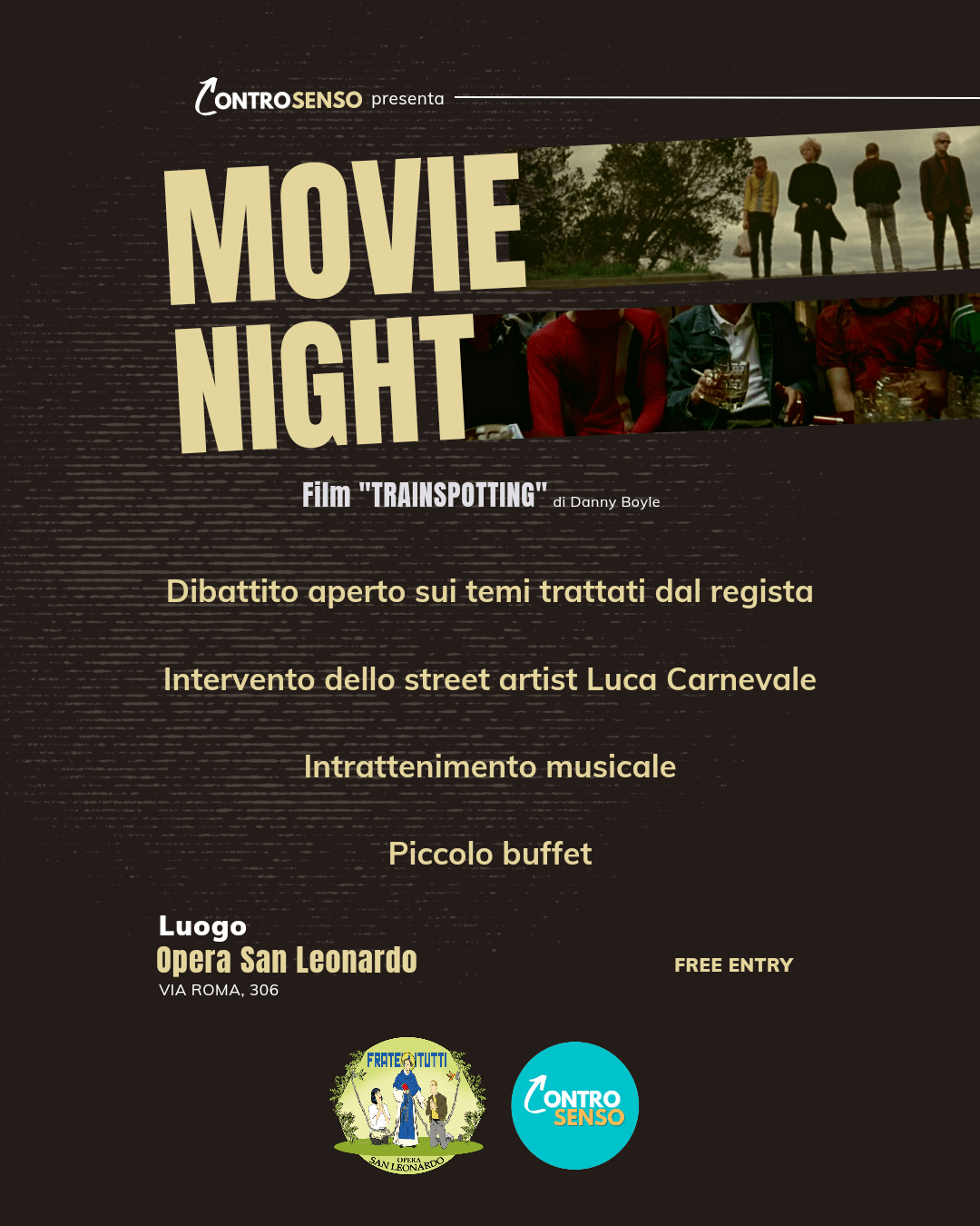 Il primo appuntamento si terrà proprio giovedì 20 luglio dalle ore 21:30 presso l’“Opera San Leonardo” in via Roma 306: verrà proiettato il film “Trainspotting” del regista Danny Boyle. Il titolo rimanda ad un termine che nello slang di strada dei giovani della Scozia indica l’essere ossessionati o dipendenti da qualcosa, in maniera particolare dalla droga. Ed è proprio il tema delle dipendenze che verrà trattato dopo la visione del film, attraverso un dibattito aperto a tutti i partecipanti all’evento.