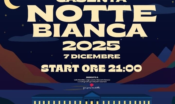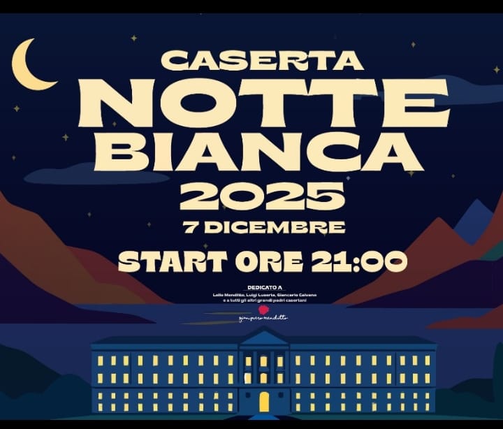 Caserta si prepara a vivere una notte di luce, musica ed energia collettiva, domenica 7 dicembre 2025, a partire dalle ore 21, torna la Notte Bianca di Caserta, uno degli appuntamenti più attesi e identitari del territorio, che trasformerà la città in un grande palcoscenico diffuso tra spettacolo, cultura, intrattenimento ed enogastronomia.