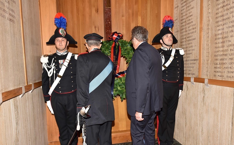 Presso il Sacrario della Legione Carabinieri Campania, in onore di tutti i Caduti dell’Arma dei Carabinieri, è stata deposta una corona di alloro alla presenza del Prefetto di Napoli Dott. Marco Valentini, del Generale di Divisione Adolfo Fischione, Comandante Interregionale Carabinieri “Ogaden”, del Generale di Divisione Maurizio Stefanizzi, Comandante della Legione Carabinieri Campania, del Generale di Brigata Canio Giuseppe La Gala Comandante Provinciale dei Carabinieri di Napoli e del Col. Emanuele De Santis Comandante del 10° Reggimento Carabinieri Campania.