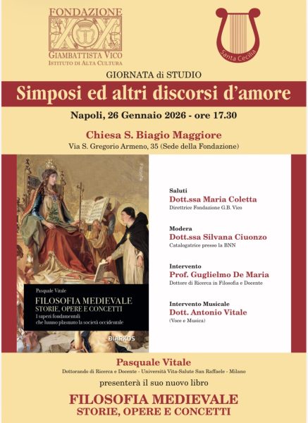 Napoli torna a essere crocevia di pensiero filosofico e tradizione umanistica con la Giornata di studio “Simposi ed altri discorsi d’amore”, in programma lunedì 26 gennaio 2026, alle ore 17.30, presso la Chiesa di San Biagio Maggiore, sede della Fondazione Giambattista Vico, nel cuore di San Gregorio Armeno.