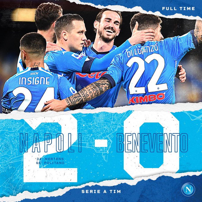 Vittoria di giustezza degli azzurri che, per loro fortuna, hanno avuto nell’allenatore degli “stregoni” un buon alleato, proprio perché a nostro sommesso avviso Filippo Inzaghi ha sbagliato la tattica, favorendo il Napoli; il Benevento, con il suo gioco rinunciatario, ha consentito così agli uomini di Gattuso di poter giocare a proprio piacimento, senza tanti grattacapi da gestire in fase difensiva, che in questo momento della stagione risulta l’anello debole della formazione azzurra, i napoletani hanno nella loro mediana due ottimi giocatori, splendidi in fase di costruzione di gioco, infatti sia Fabian Ruiz che Zielinsky sono stati tra i migliori in campo, proprio perché poco pungolati in fase di copertura; quindi si invitano i tifosi partenopei a non esaltarsi più del dovuto anche se, con i 3 punti conquistati dalla squadra napoletana, possono vivere un momento di tranquillità, il che di questi tempi è manna, inoltre, soprattutto, conseguentemente al recente risultato vittorioso, la squadra rimane in corsa per l’ultimo obiettivo stagionale rimasto, e cioè il quarto posto in classifica che consente l’accesso alla Champions League.