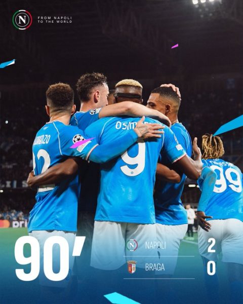 Napoli – Braga 2 a 0 Gli azzurri passano il turno con il più classico dei risultati